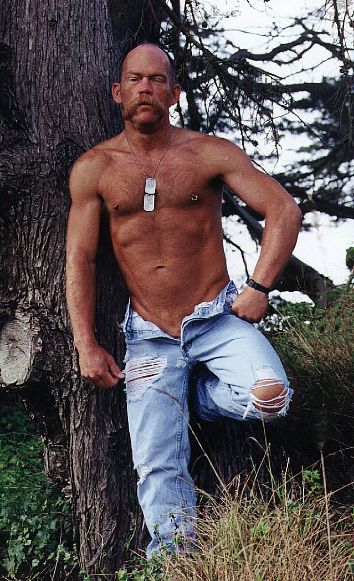 through ripped and open jeans.